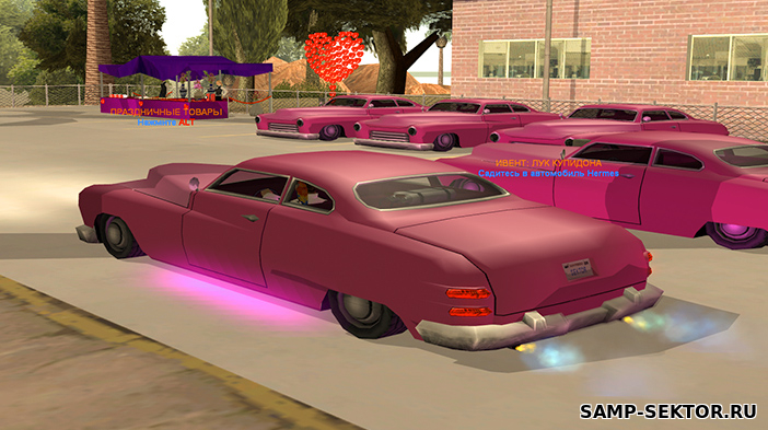 - Переходим к следующему, новому ивенту - лук Купидона! Рядом с торговцами появилось множество необычных автомобилей. Садитесь в один из них, чтобы начать ивент!