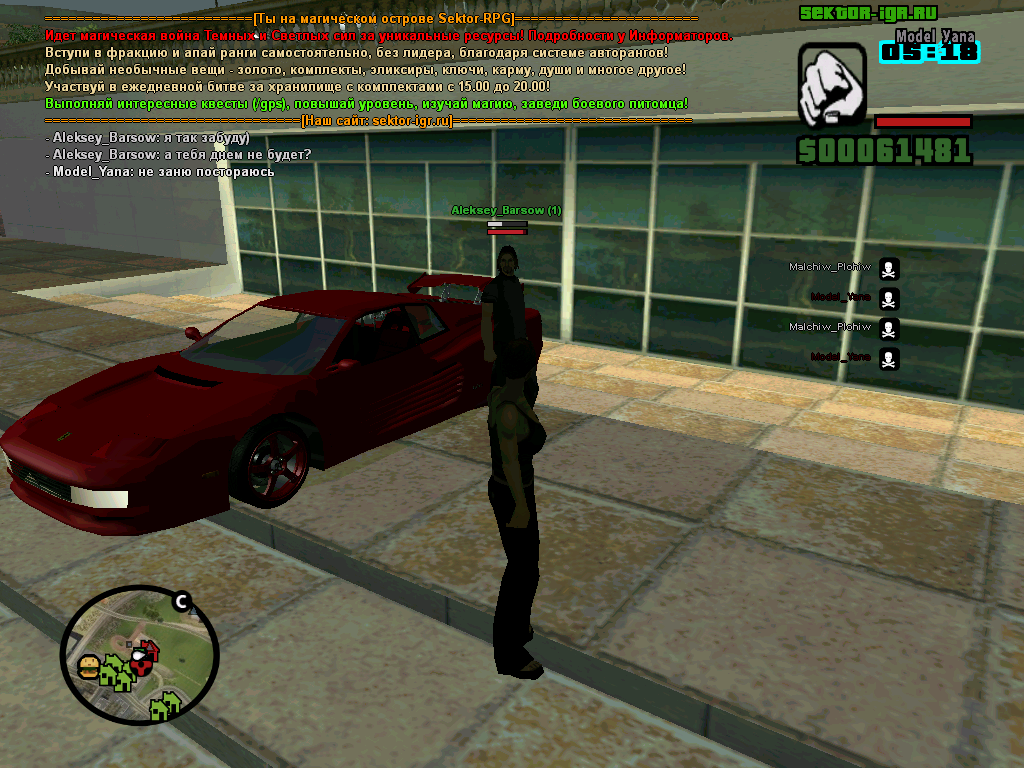 Alex_Sikes Вернулся =) Лвл-31 Кар-Монстр(продаю) Гильдия-Чародеи Доп-велик,вертолет.
