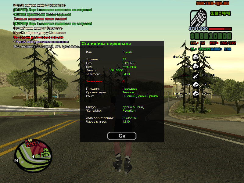 Ник: Maxim_Koval ЛвЛ: 22 Фракция: Темные Ранг: Призрак Гильдия: Воры Титул: Убийца зомби ( когда будут титулы я им стану) )