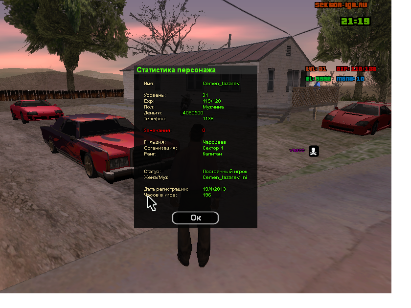 Alex_Sikes Вернулся =) Лвл-31 Кар-Монстр(продаю) Гильдия-Чародеи Доп-велик,вертолет.