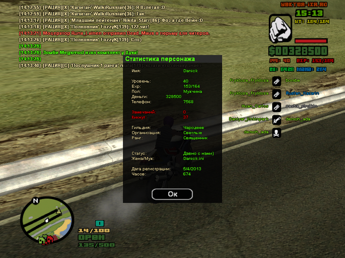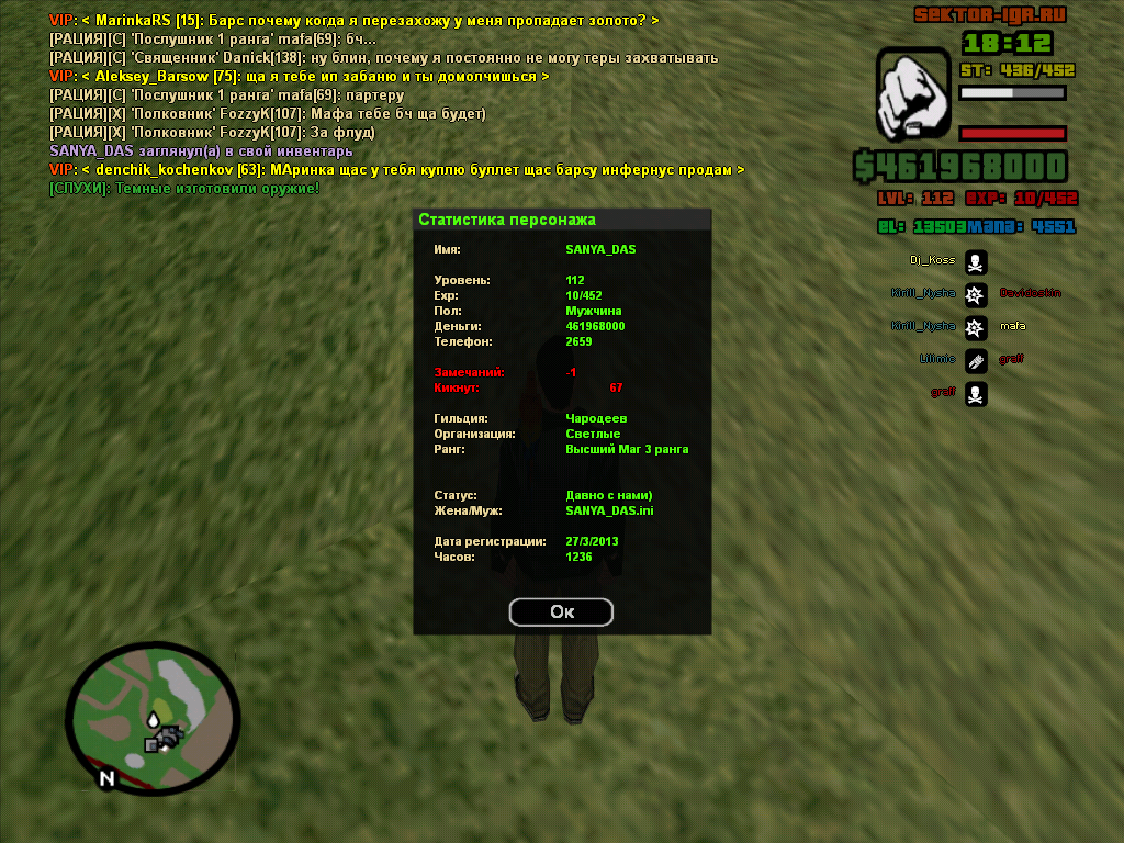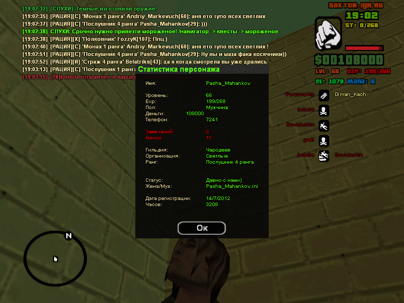 Danick Фракция: Светлые Ранг: 12 Должность: Престол. Спорт, самп и рок!!!!!