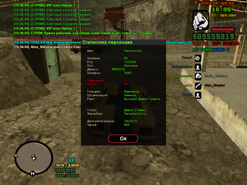 ✔НИК:Pasha_Mahankov.С вами с 14/07/2012 ☢ДОПА: 0 ツЧАСОВ В ИГРЕ:17+к ►Vip 35 lvl Бывший владелец острова)) ☢Фракция: Темные ツРанг: Высший демон 4 ранга