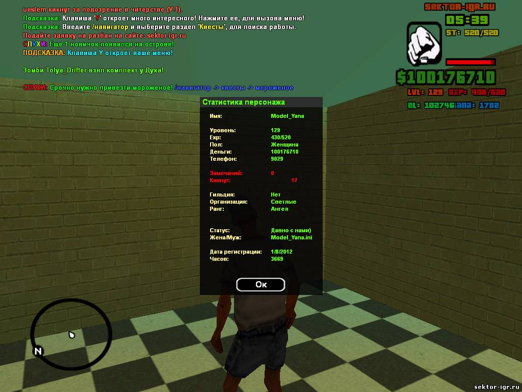 Danick Фракция: Светлые Ранг: 12 Должность: Престол. Спорт, самп и рок!!!!!