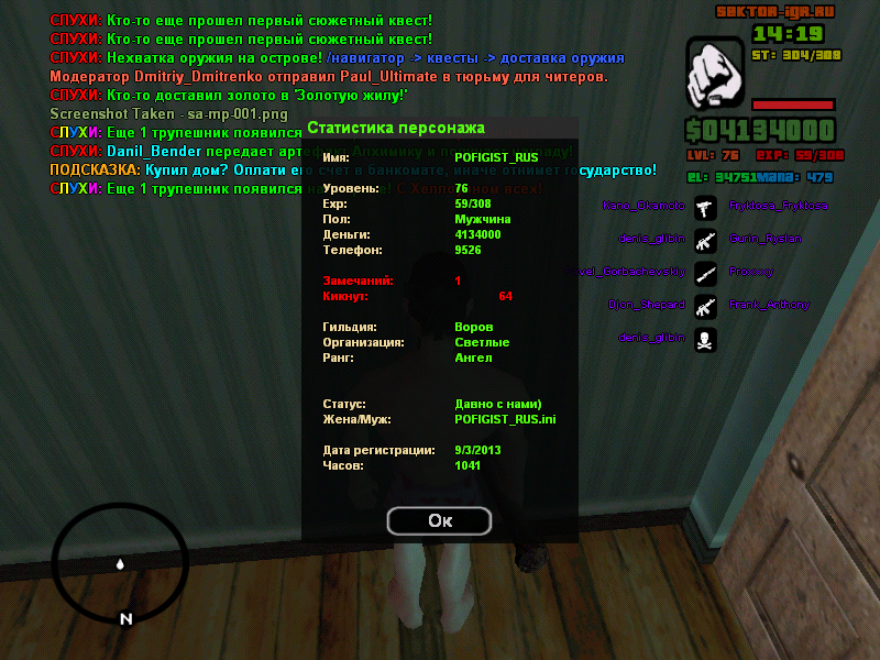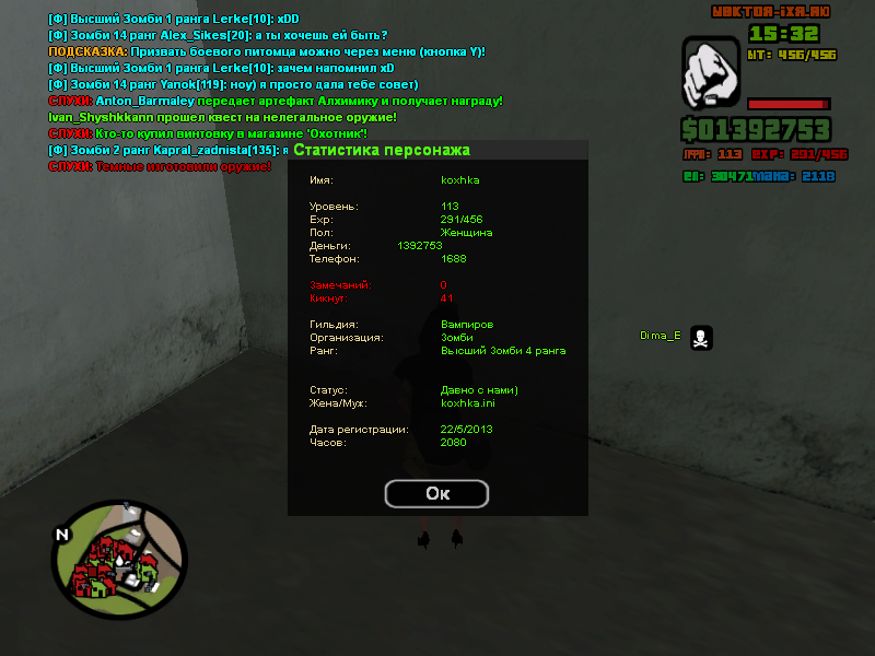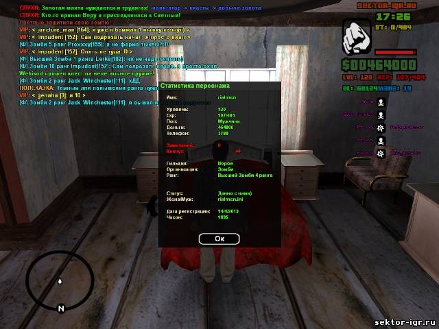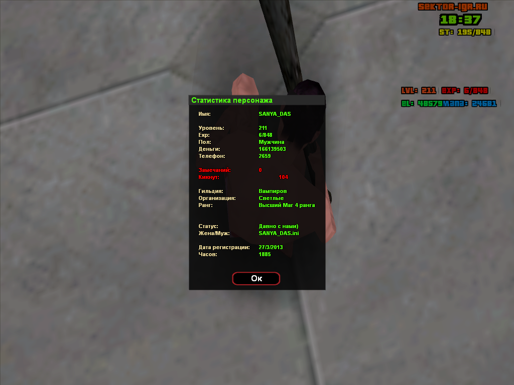 by_Barmaley ===================== 90 lvl , 8 vip фракция : Хранители 13 ранг Майор .