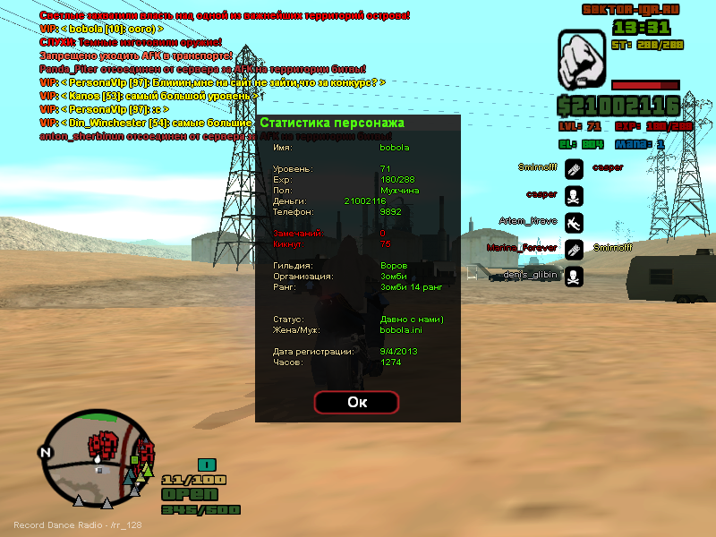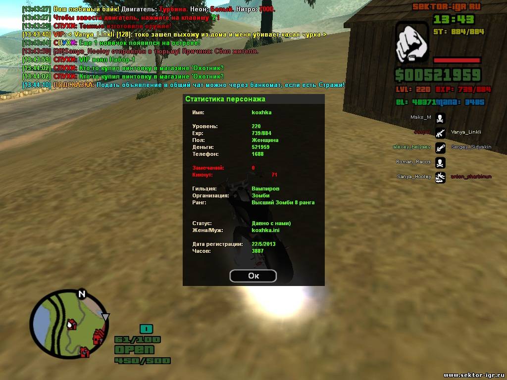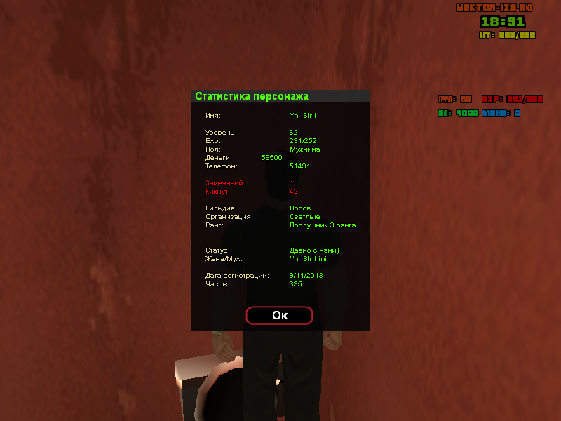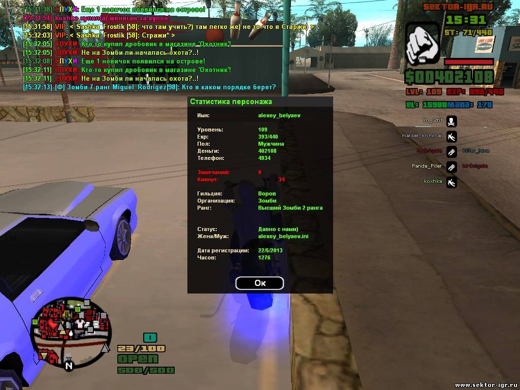Фрака: Светлые Ранг: Выший Маг 3 Ранга ЛВЛ: 153 Гильдия: Вор Дом: Бомжатник) Машина: Хамер