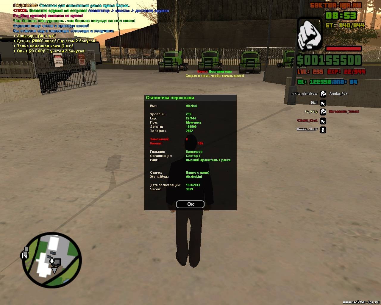 | ник:SANYA_DAS lvl:236 exp 2/948