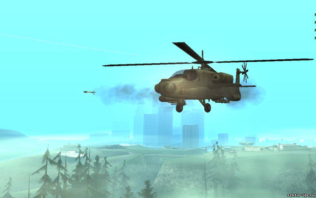 Вертолет снабжен мощным самонаводящимся пулеметом (намного мощней, чем на гражданских моделях), а так же двумя ракетными установками, что делает его воистину смертоносным!