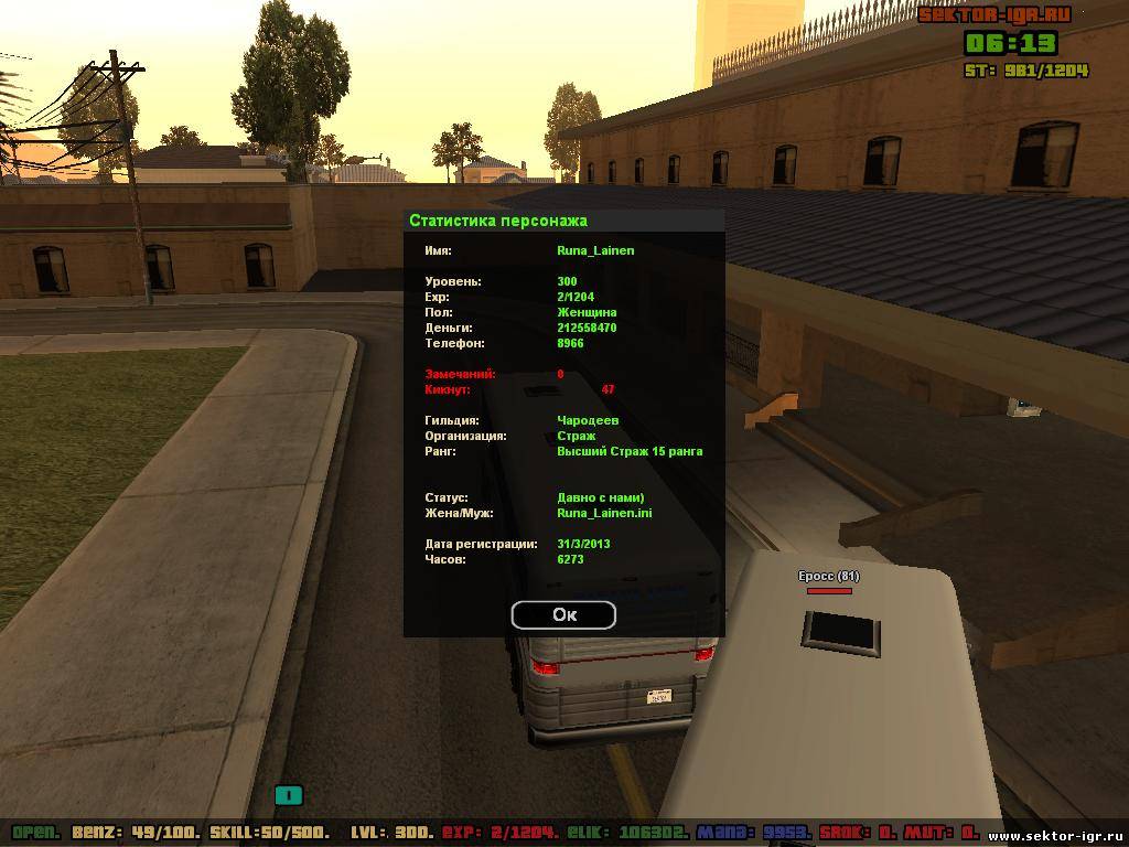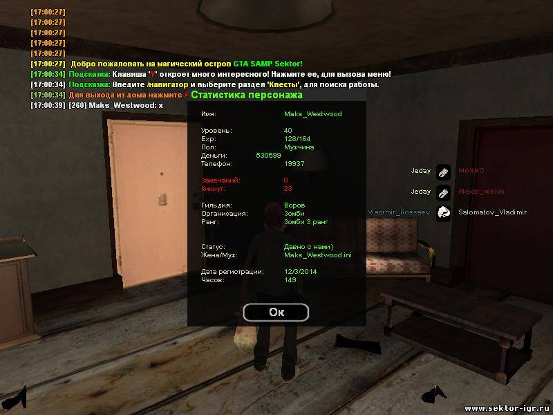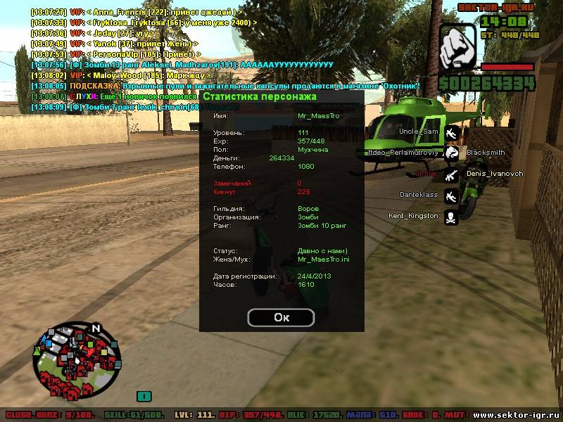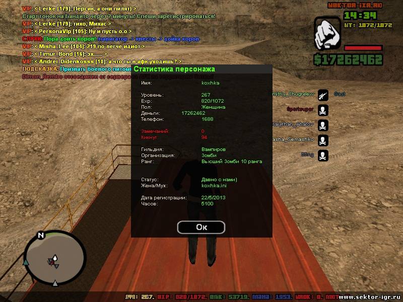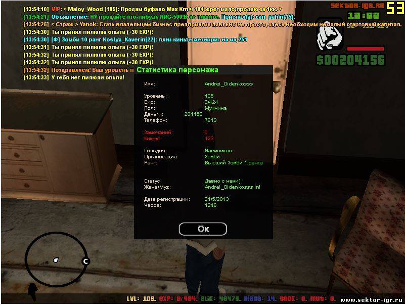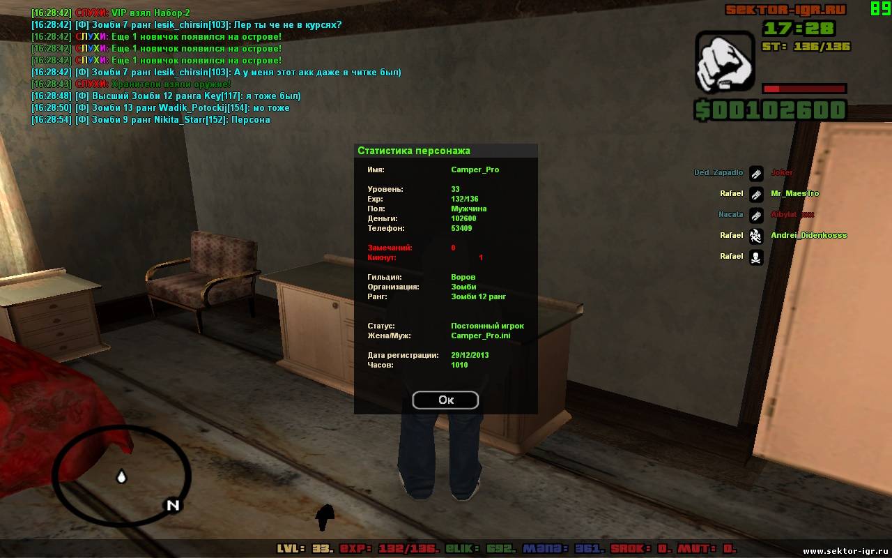 Ник - Camper_Pro Фракция - Зомби Ранг - Зомби 14 ранга Гильдия - Воров