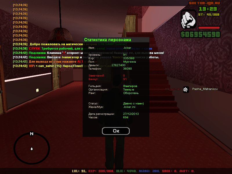 ✔НИК:Pasha_Mahankov.С вами с 14/07/2012 ☢ДОПА: 0 ツЧАСОВ В ИГРЕ:17+к ►Vip 35 lvl Бывший владелец острова)) ☢Фракция: Темные ツРанг: Высший демон 4 ранга