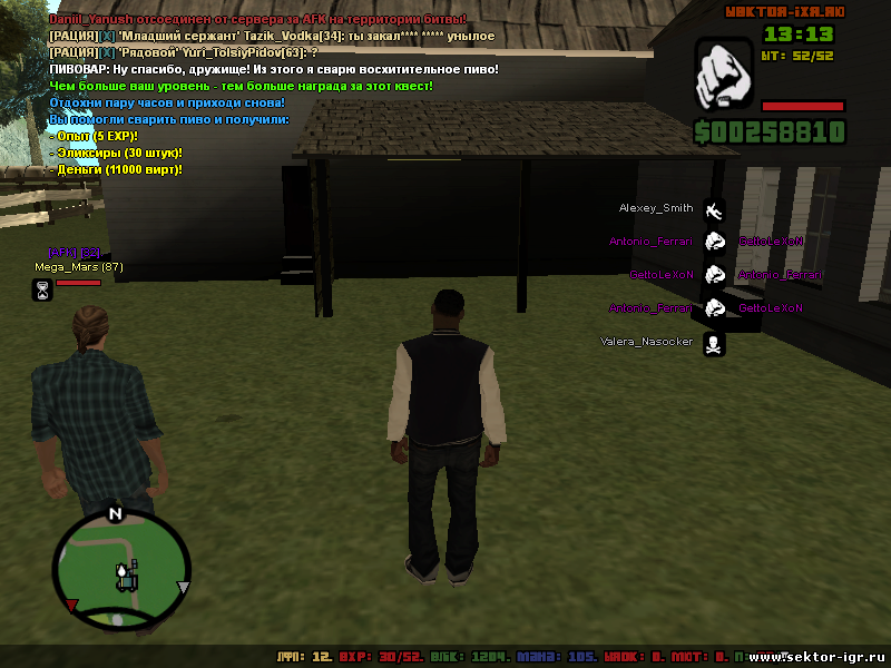 А теперь работа для настоящих мужчин! Пивовару нужно помочь в приготовлении пива. А то сам бедняга за руль сесть не может, уж больно увлекся... Выполните квест "Пивовар".