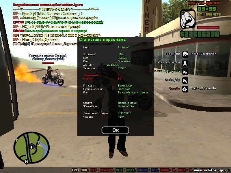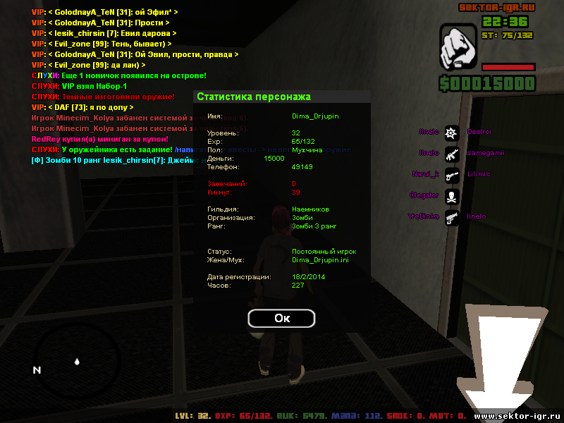 ✖ Пока не доказано, меня мало волнует, что сказано. ✖ ◉_◉ Aleksey_Barsow → GTA SA:MP SEKTOR: Магический остров → GTA SA:MP SEKTOR-2: Постапокалипсис ◉_◉ Кто с читами - тот чмошка ツ ✖ Написать в личку ✖