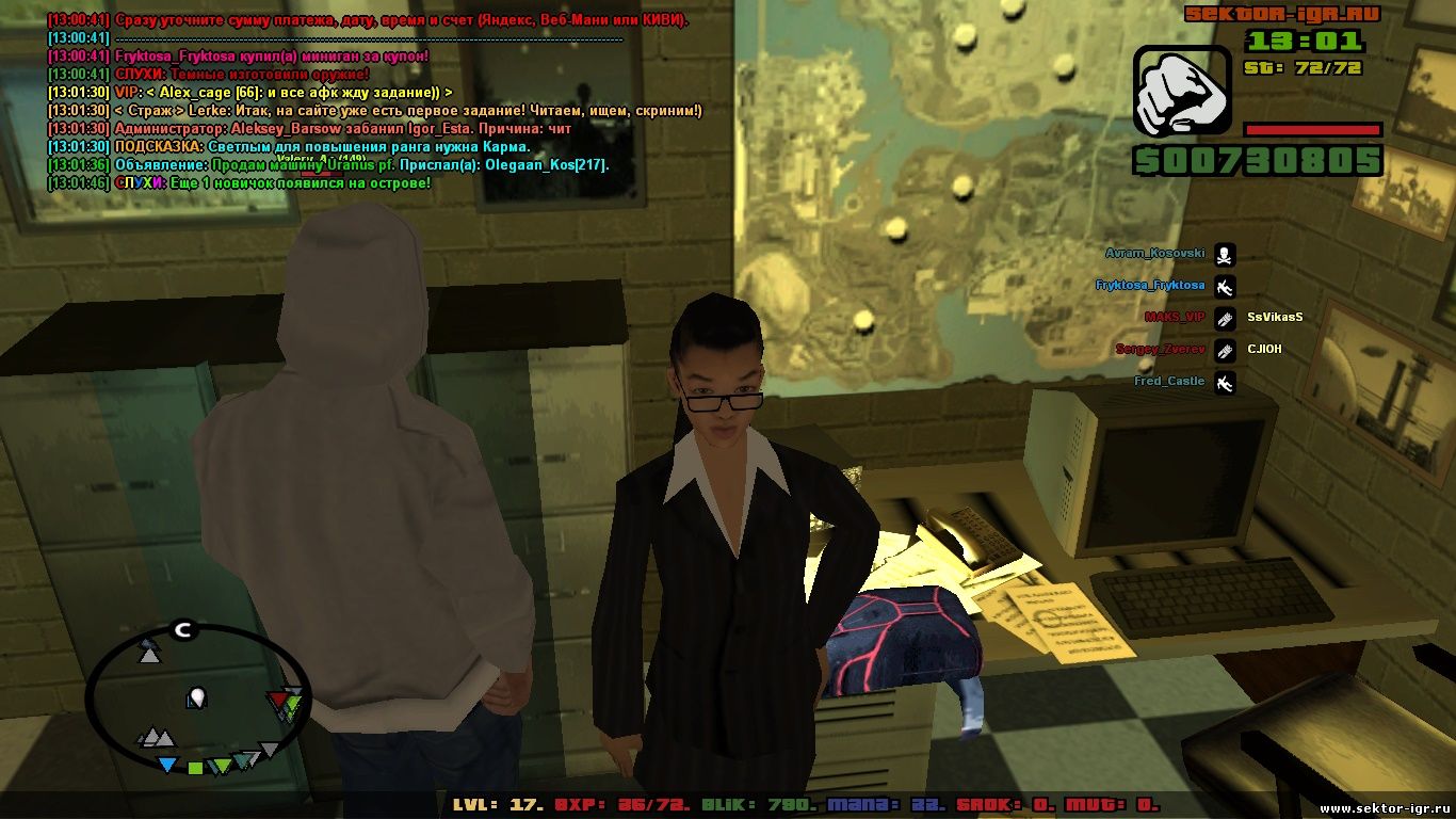 Ник: Vitalik_Volkovv; Фракция: Темные; Ранг: 5; lvl: 26; ЗП: 7000 вирт;