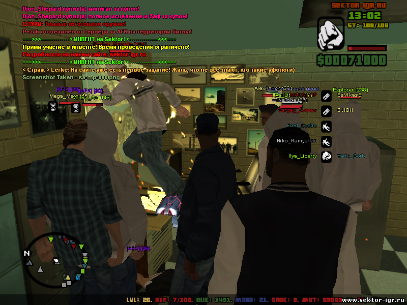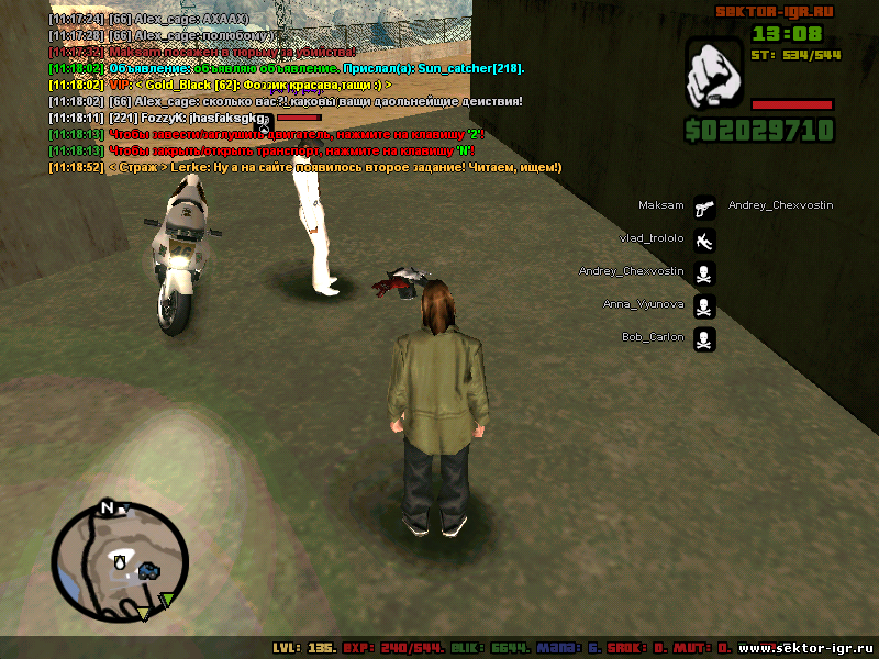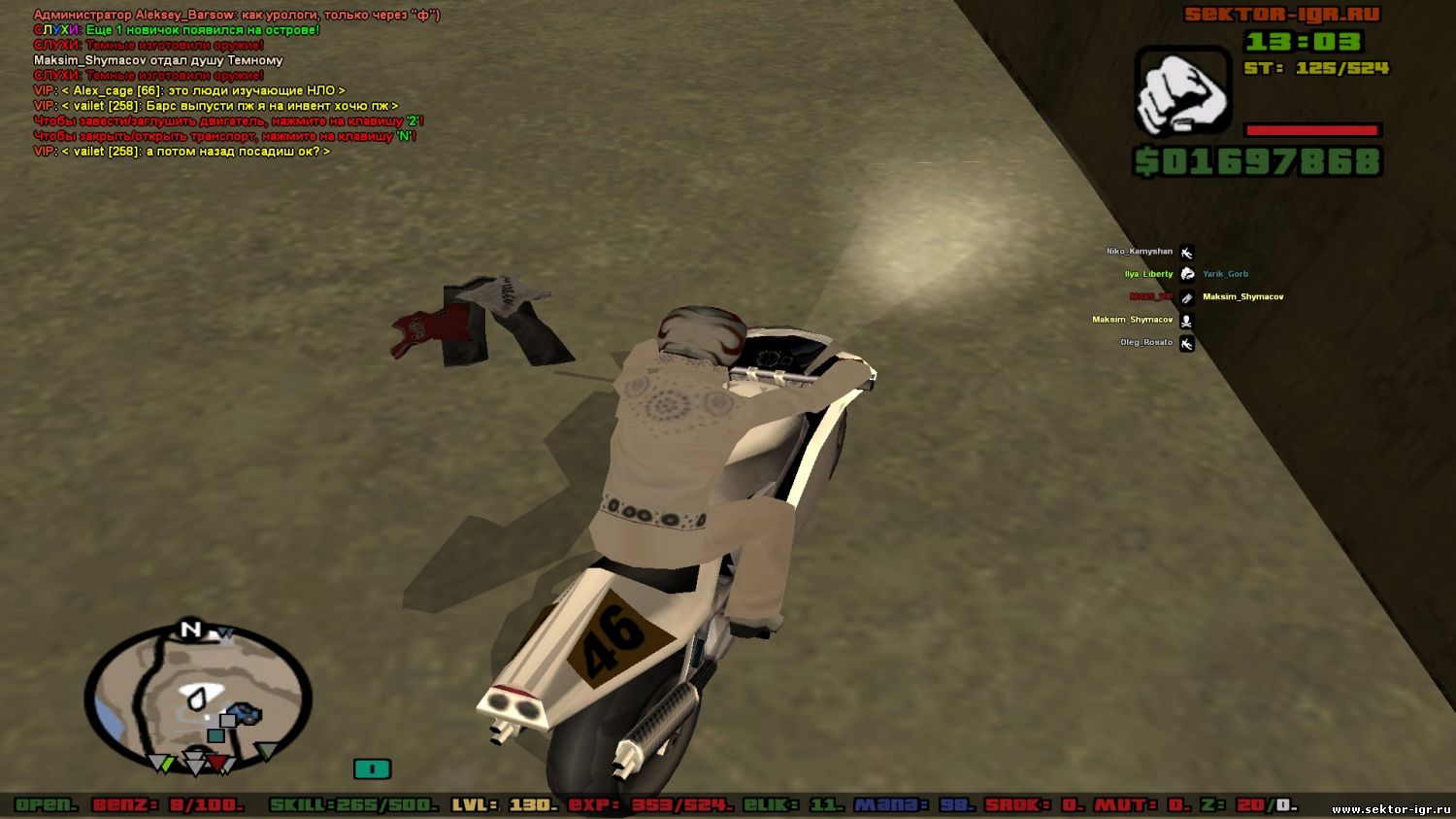 ник: Explorer фракция: бомж лвл: 150+ Я даже думаю, что самое лучшее определение человека – это: существо на двух ногах и неблагодарное. Ф.М Достоевский.