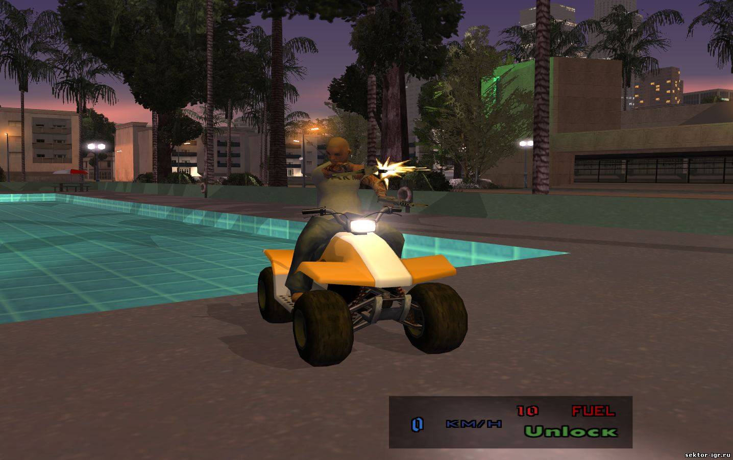 • Квадроцикл ставится как дополнительный транспорт, привязанный к имени - никто у вас его не угонит!