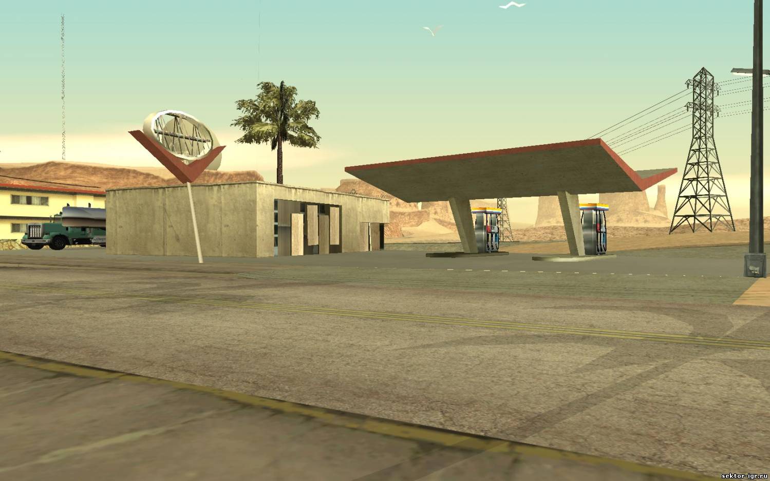 Это сама близкая заправка, расположена очень удобно и через нее проходит новый первый сюжетный квест.