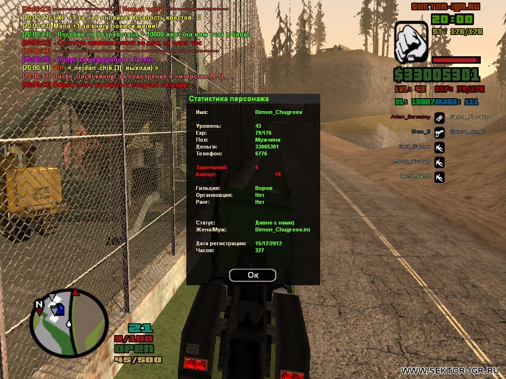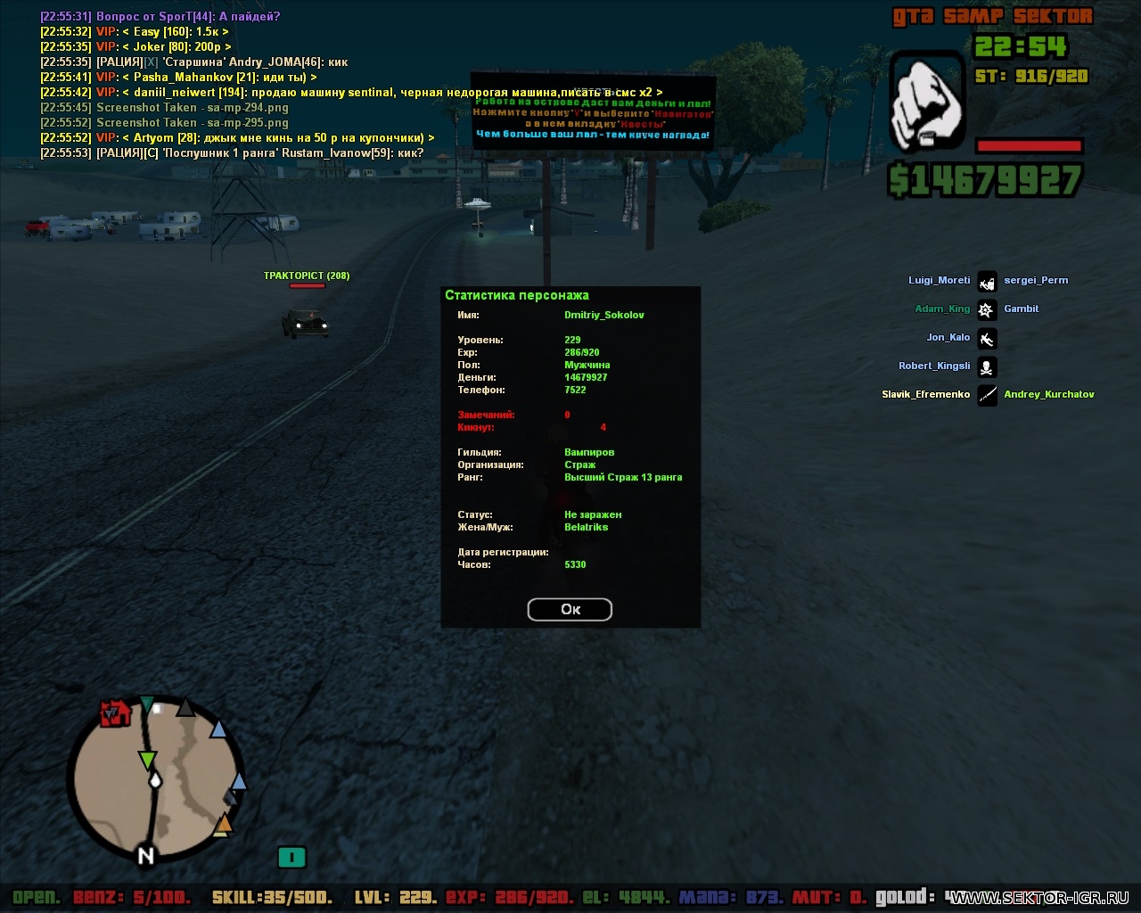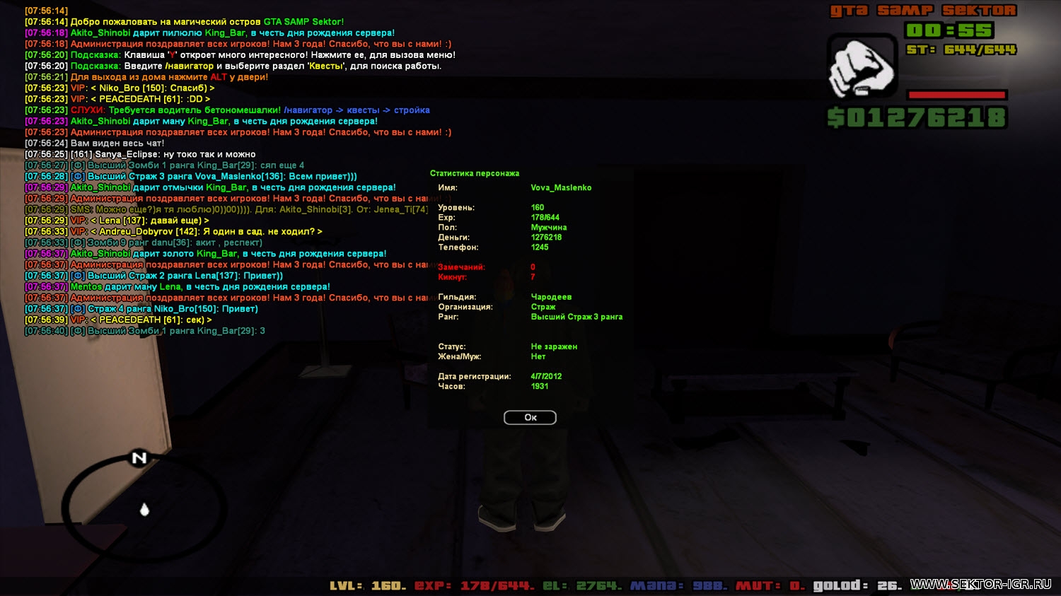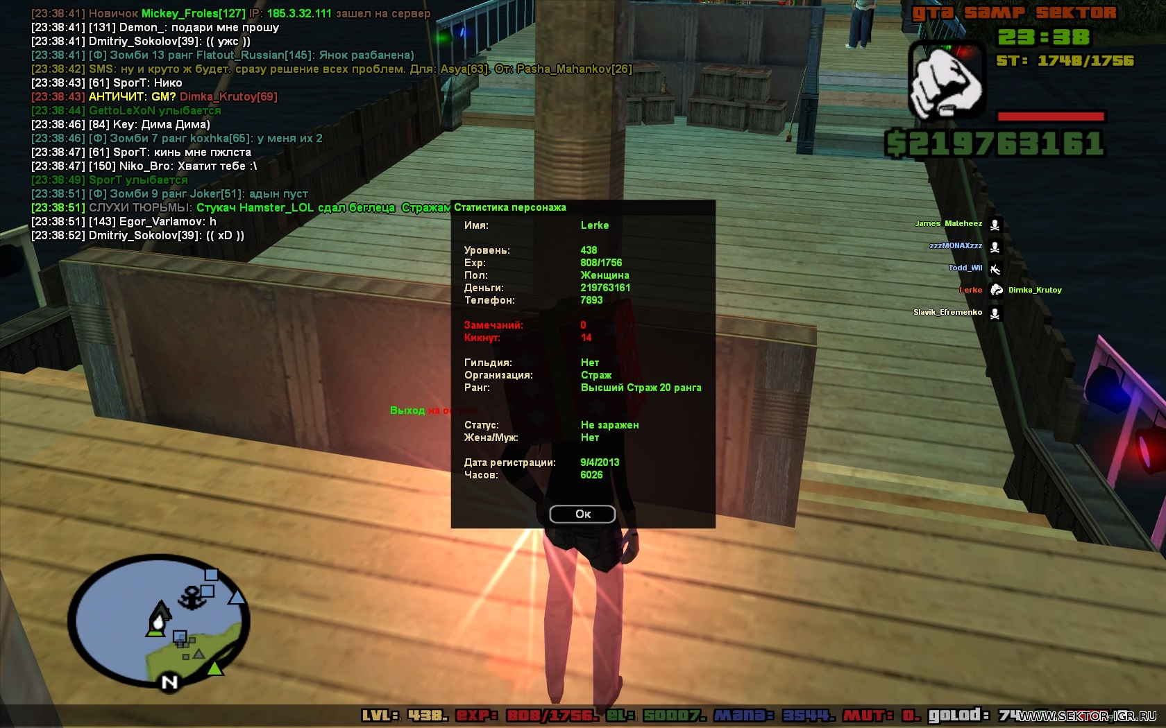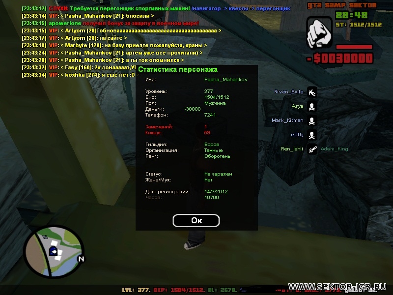 ✔НИК:Pasha_Mahankov.С вами с 14/07/2012 ☢ДОПА: 0 ツЧАСОВ В ИГРЕ:17+к ►Vip 35 lvl Бывший владелец острова)) ☢Фракция: Темные ツРанг: Высший демон 4 ранга