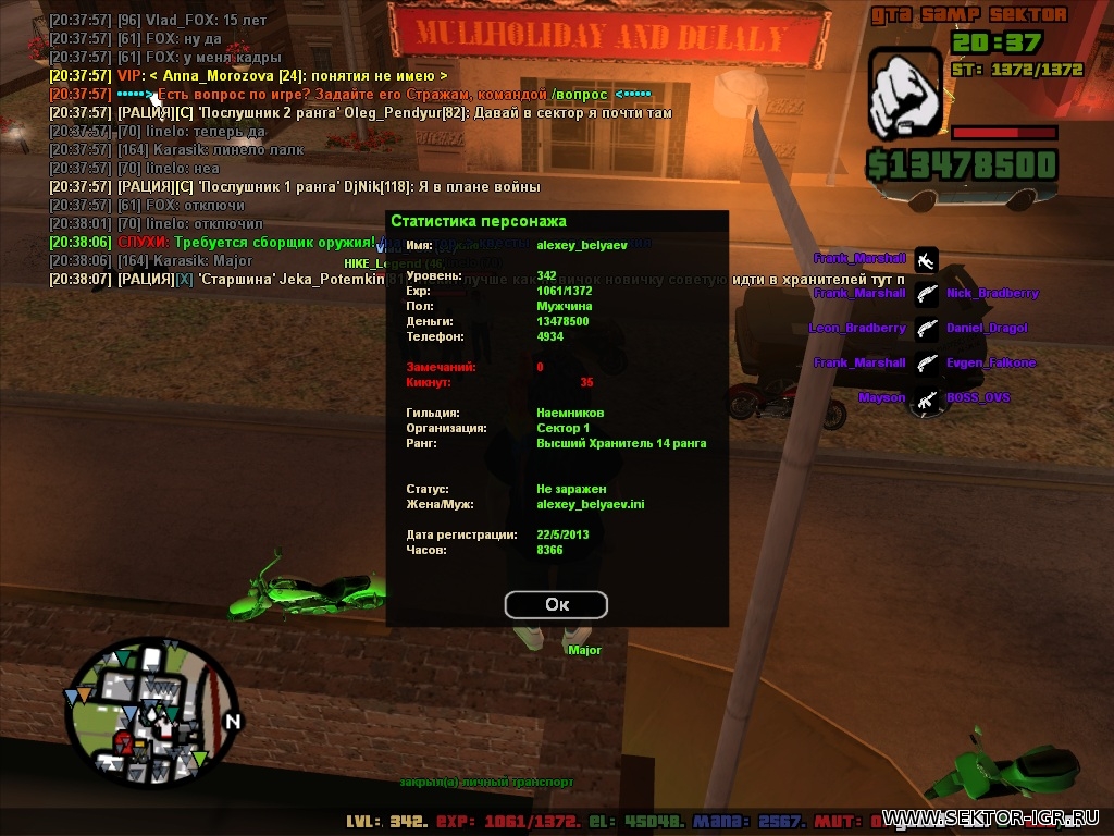 ✖ Пока не доказано, меня мало волнует, что сказано. ✖ ◉_◉ Aleksey_Barsow → GTA SA:MP SEKTOR: Магический остров → GTA SA:MP SEKTOR-2: Постапокалипсис ◉_◉ Кто с читами - тот чмошка ツ ✖ Написать в личку ✖