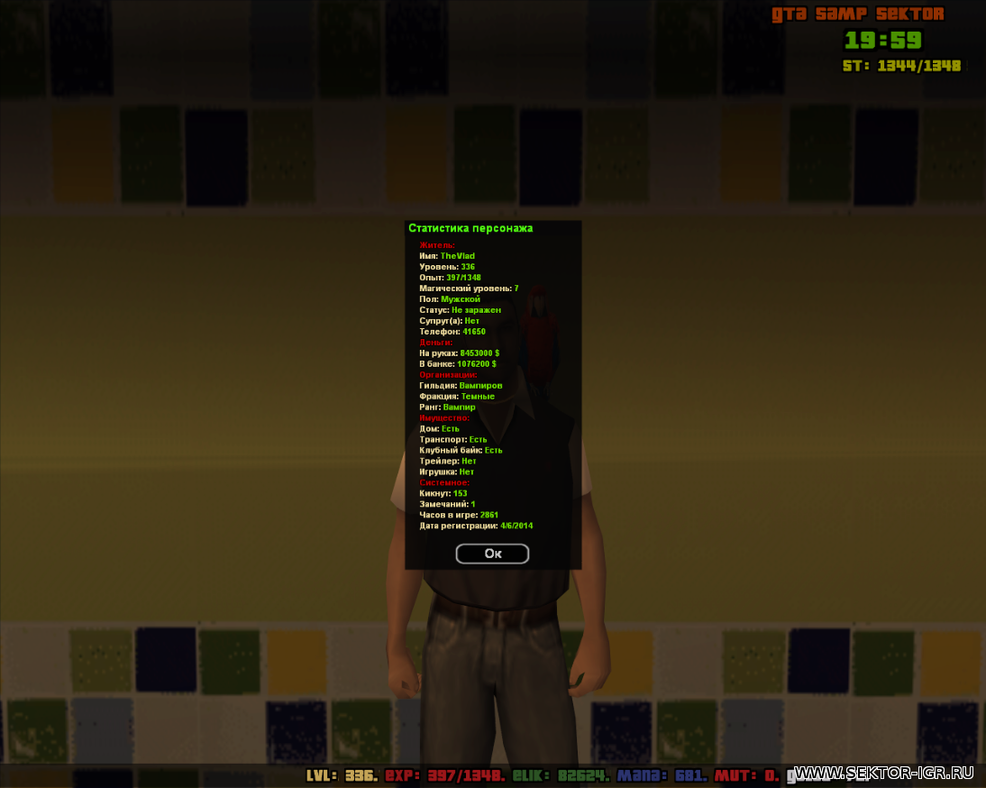 | Игровой ник: TheVlad. Уровень: 336.