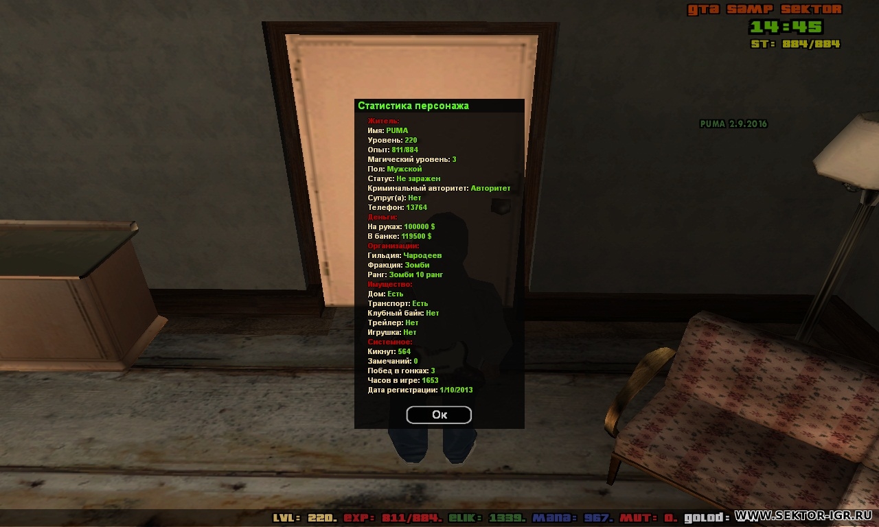 ✖ Пока не доказано, меня мало волнует, что сказано. ✖ ◉_◉ Aleksey_Barsow → GTA SA:MP SEKTOR: Магический остров → GTA SA:MP SEKTOR-2: Постапокалипсис ◉_◉ Кто с читами - тот чмошка ツ ✖ Написать в личку ✖