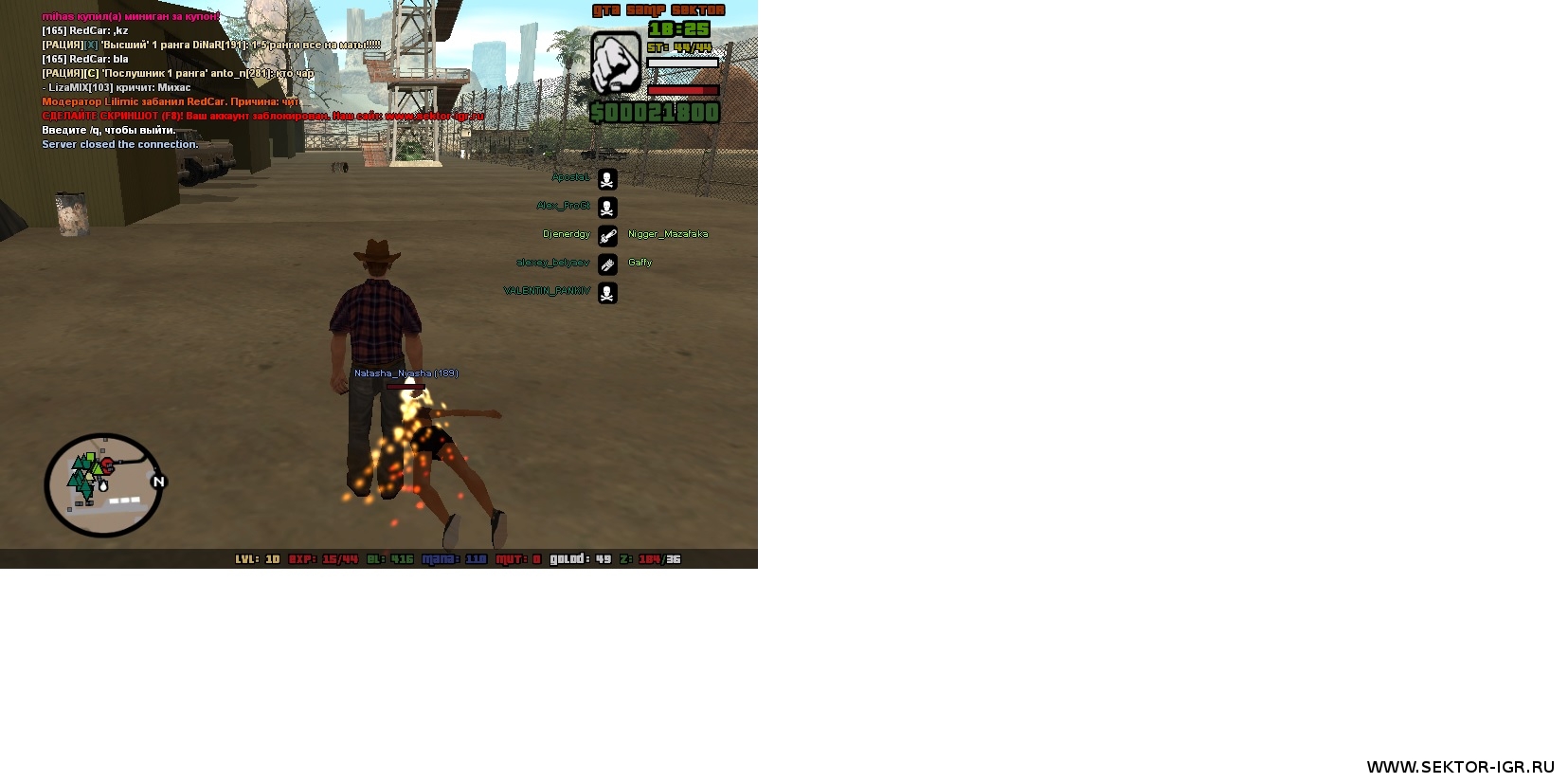 | $IMAGE1$логин: Monster_Andr Был забанен не за что, просто ехал на машине и в момент отключился сервер, когда захожу пишет: