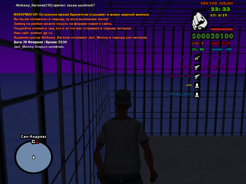 | Жалоба на Aleksey_Barsow От Jact_Money Описание ситуации: Я ехал на скутере выполнял первый квест. Тут бац скутер угнали, ну и после етого в тюрьму для читеров. За читы, спрашиваю какие читы. Он молчит, а то как угнали скутер просто на месте стоял. Cкриншот:
