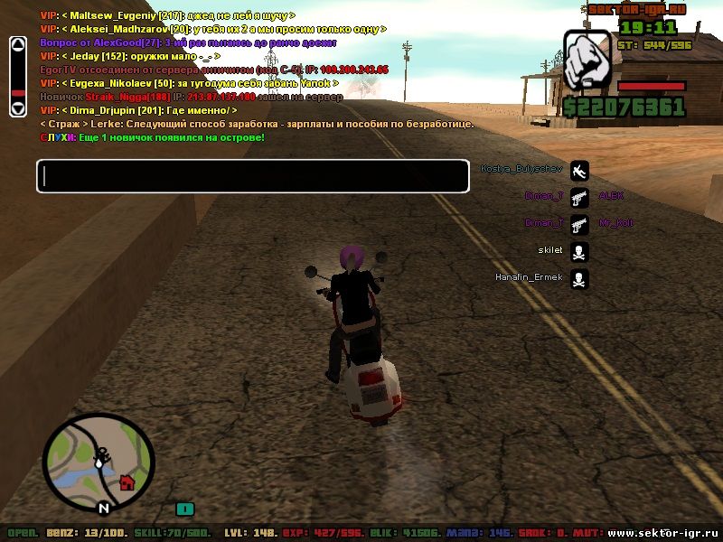 | Страж Lerke дала бан чата на 1 час и 30к штрафа, за то что я написал в ответ стражу Yanok. Пусть Yanok для начала разговаривать вежливо научится и без оскорблений!!!!!!!!!!!!!!! Мой ник: Evgexa_Nikolaev