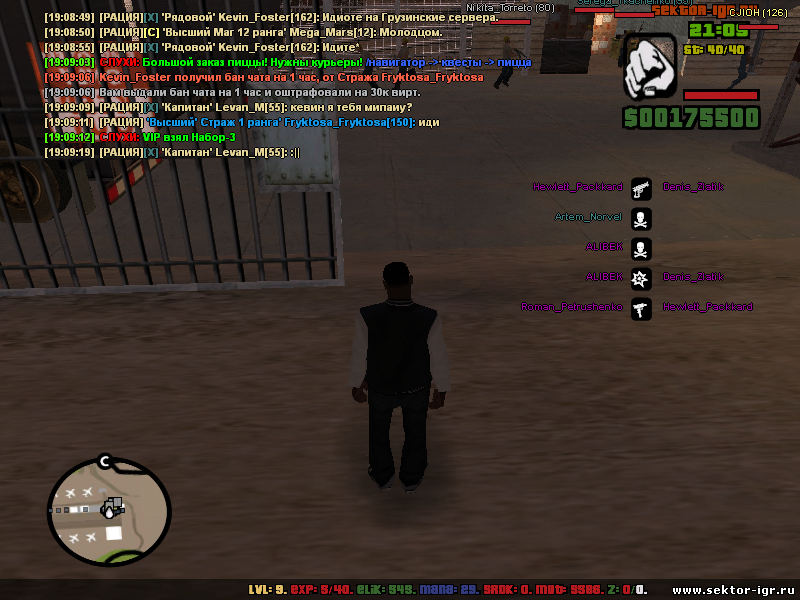 | Цитата Kevin_Foster (  ) Короче, началось всё с того, что в рации человек плохо писал по русски, и писал что он живёт в Грузии, и поэтому плохо понимает русский язык. Я написал ему "Идите играйте на Грузинских серверах" и тут Fryktosa_Fryktosa дала мне мут на час и забрала 30 тысяч вирт. Вопрос: ЗА ЧТО!? За зазыв на другие сервера. Будь осторожнее с такими фразами, в следующий раз могут наказать куда серьезнее. Штраф выдается автоматически с баном чата, деньги эти никому в карман не идут.
