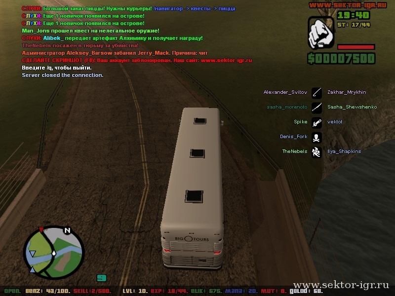 | Перестаньте удалять мои жалобы!!! Здравствуйте. Мой ник: Jerry_Mack Меня забанили за читы которых у меня нет забанил меня Администратор Aleksey_Barsow. Настоятельно прошу разбанить для продолжения игры. Во время бана проходил квест "Автобусы"