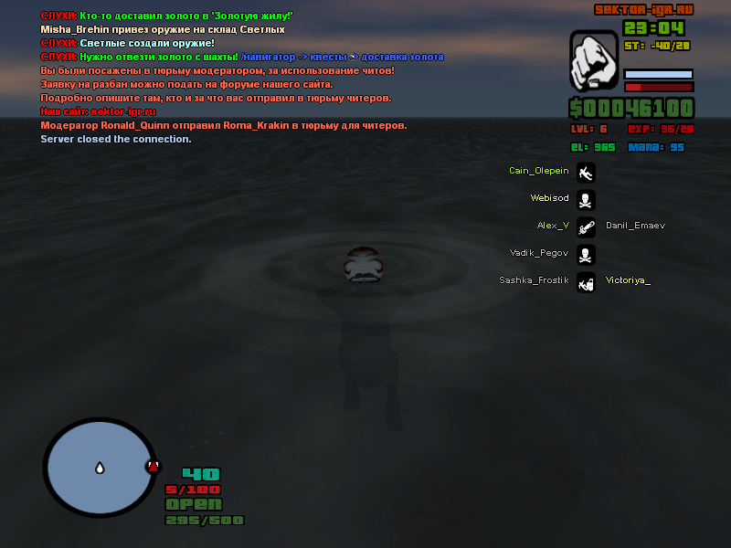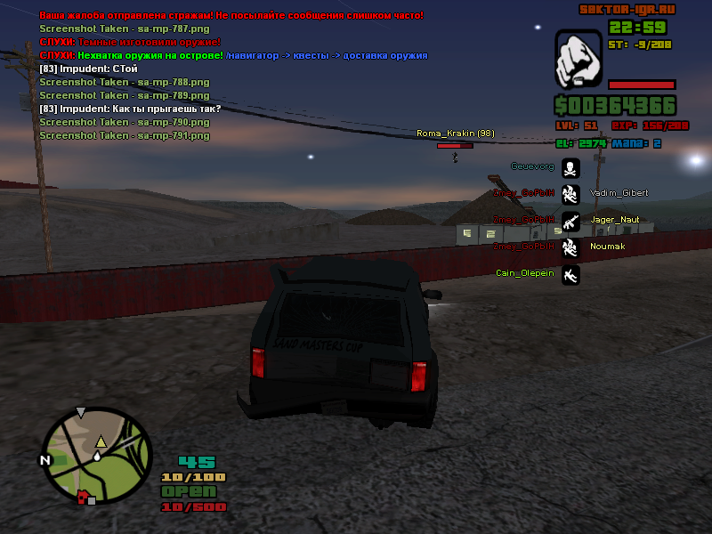 | Цитата Roma_Sviridov (  ) Еду я на мопеде(выполнял квест), смотрю надписать посажен в тюрьму для читеров Посадили за просто так Док-ва и ник админа на скрине: Цитата Roma_Sviridov (  ) Во 1 в шлеме я был потому-что перед тюрьмой ехал на скутере Во 2 кикнуло меня я не знаю за что В 3 могу сделать скрин где я в тюрьме Цитата Roma_Sviridov (  ) Чё,какой нафиг сх??и доква есть??