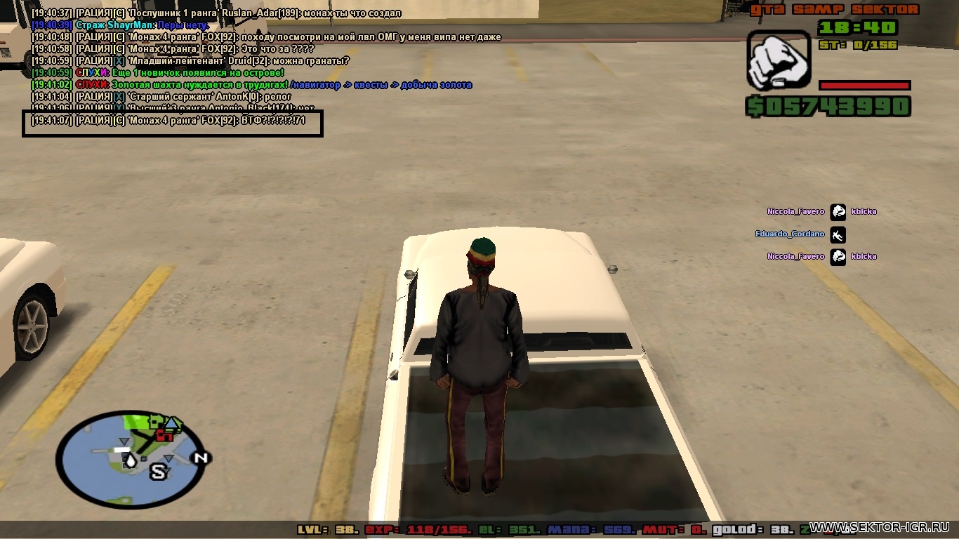| Тоже самое!( Зайти смог, но вип, лвл, фракция пропали! Всё пропало! За то доп, который я покупал перед этим инцидентом стоит возле МОЕГО ДОМА! Я могу в него садится, но респаюсь на бомжатнике. Ник акка: kolya_skorokhodov Было: VIP 5 (донил 450р. Коммент остался. На некоторых фотографиях виден мой ник в ВИП чате и большое кол-во вирт), дом каморка (он так то и сейчас принадлежит моему нику, но респаюсь я на бомжатнике и не могу оплачивать за него счета), доп тачка (Jester), 32 лвл, фрака Зомби (6 ранг), остаток в 5кк вирт, основная тачка (Sultan со всем тюном кроме неона). Очень сильно прошу помочь, так как утеряно много всего...