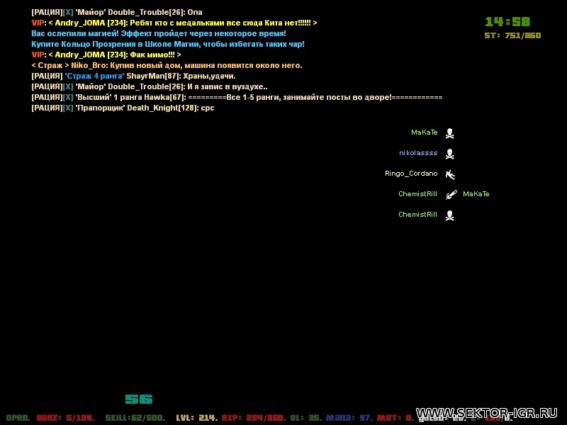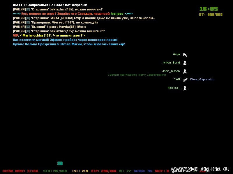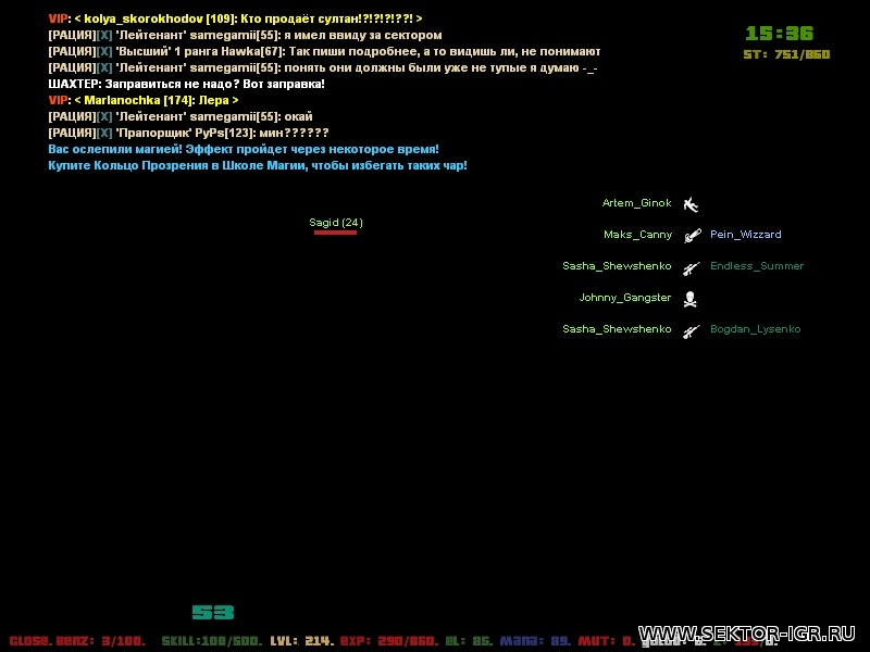 | Sagid постоянно ДМит слепой и огнем срывает мне квесты,(терры и защиты нету), хоть не видно четко, но прошу, пожалуста, Барс глянь логи, я не намерен это терпеть!
