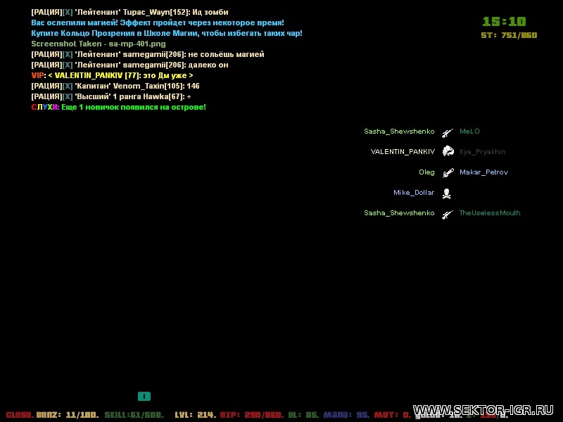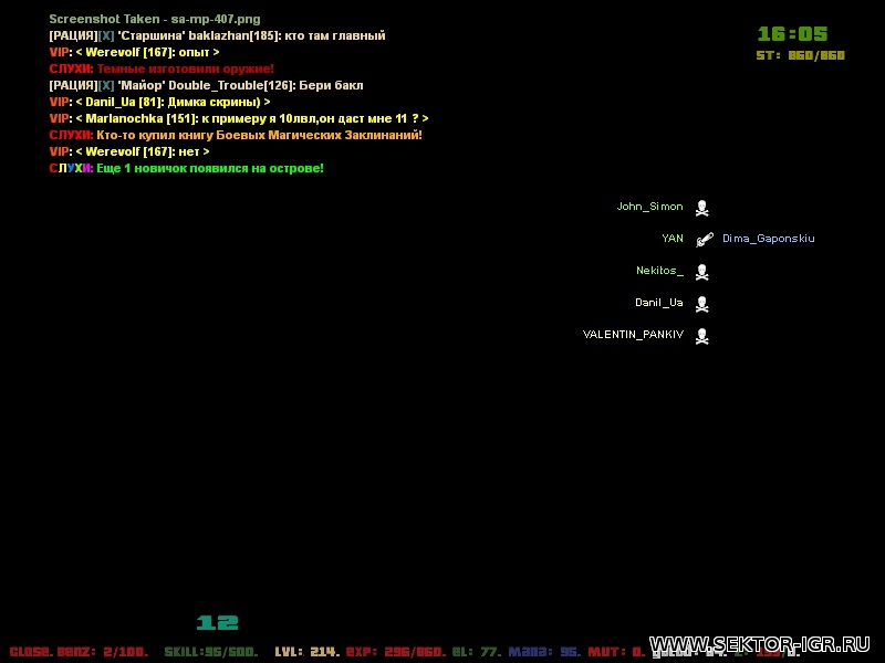 «GTA SAMP SEKTOR | Магический остров» «Sagid» «Уровень: 150+» «VIP: 13 LVL» «Клубы: Байкеры» «Фракция: Темные» «Ранг: Высший Демон 20 ранга»