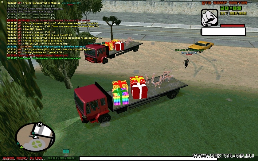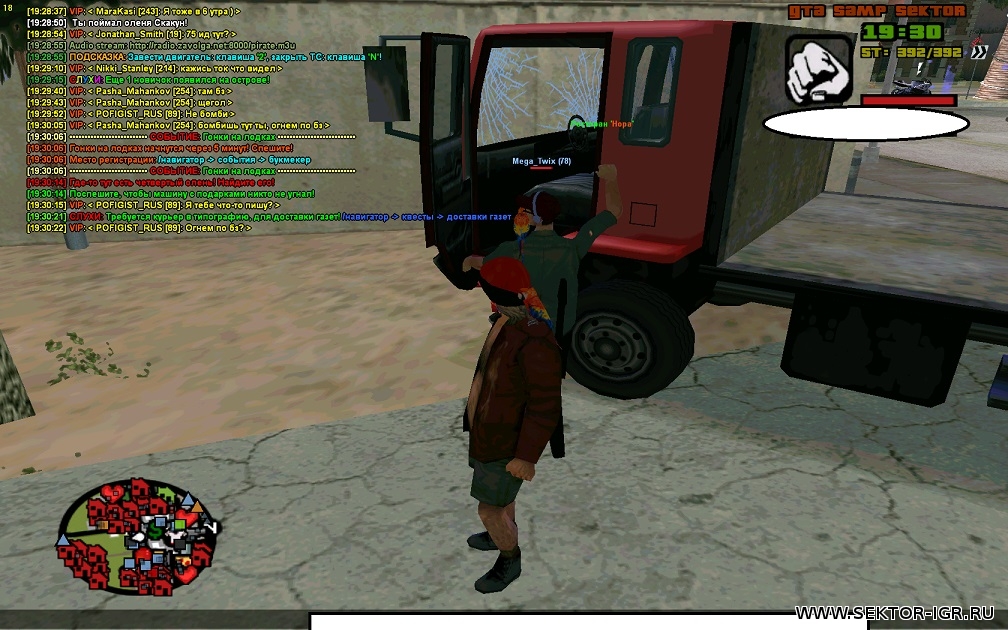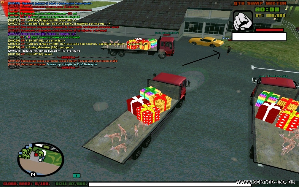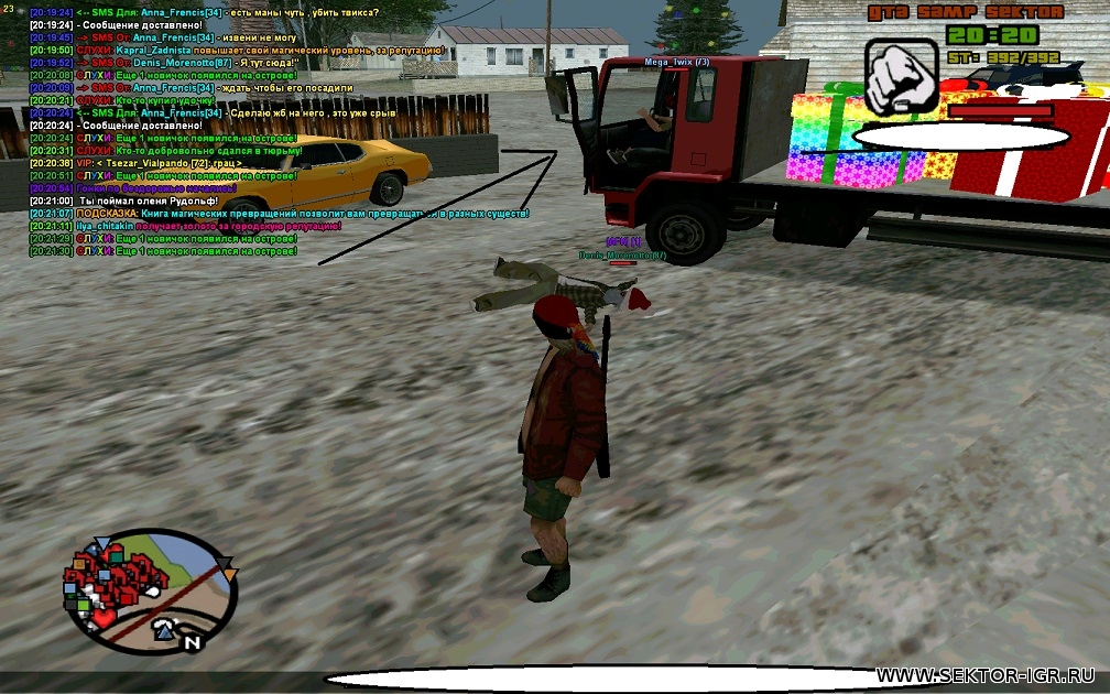 | Цитата Wolf_Whiskey (  ) он просто мешал всем, он не елал ивент 1-е,я делал ивент 2-е, При выходе из машины пишет "поторопитесь,чтоб машину с подарками не угнали" 3-е, Срыва ивента тут нет! Срыв ивента, это убить тебя или расстрелять машину