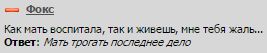 | Фокc, что ты там про родных патякал, чмоха ускоглазая?) Знаешь хорошо, я первый к тебе не лезу, вечно мне пытаешься кв сорвать, и срывал, если это получалось. Про Дм огнём я вообще молчу.. Думаю, многие докажут, сначало я вас предупреждаю в чат, чтобы не лезли, потом ведь сюда прёте и чепуху несёте..