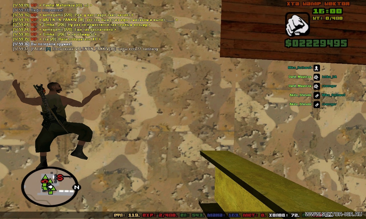 | Паша этот скрин добавление к огню дану и майора ты там в углу стоял огнем не лил к тебе вопросов нет тока то что выйти пару раз от лифта не далДобавлено (11.04.2016, 19:30) --------------------------------------------- 380991758089, я не успел отойти что ты говоришь я тебе потом и сказал че у лифта льешь Добавлено (11.04.2016, 19:31) --------------------------------------------- Аня многих жб было сказанно что ваша цель аномалия у лифта вам делать нечего и стоять пасти нас там тоже