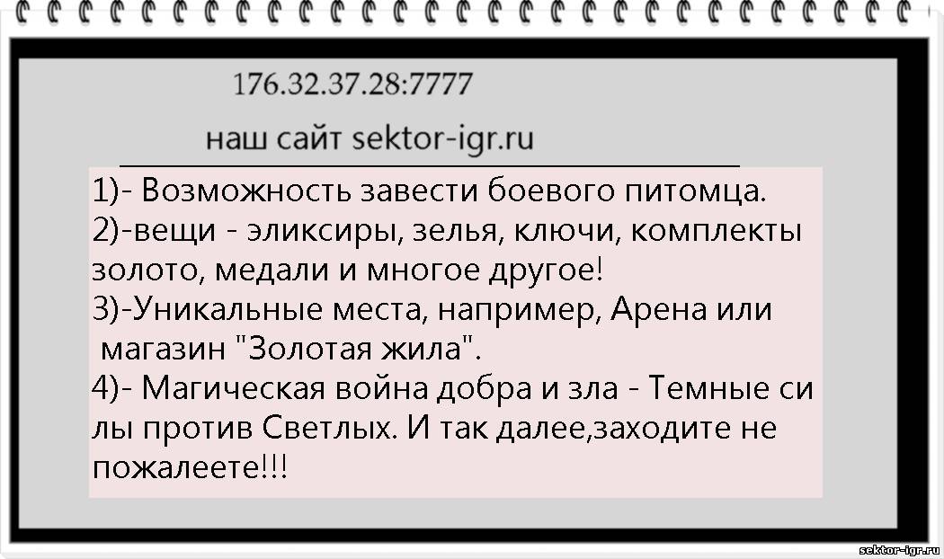 Играйте в новое - новый сервер GTA Samp про магию - Sektor-RPG: http://sektor-igr.ru/ ИП: 176.32.37.28:7777
