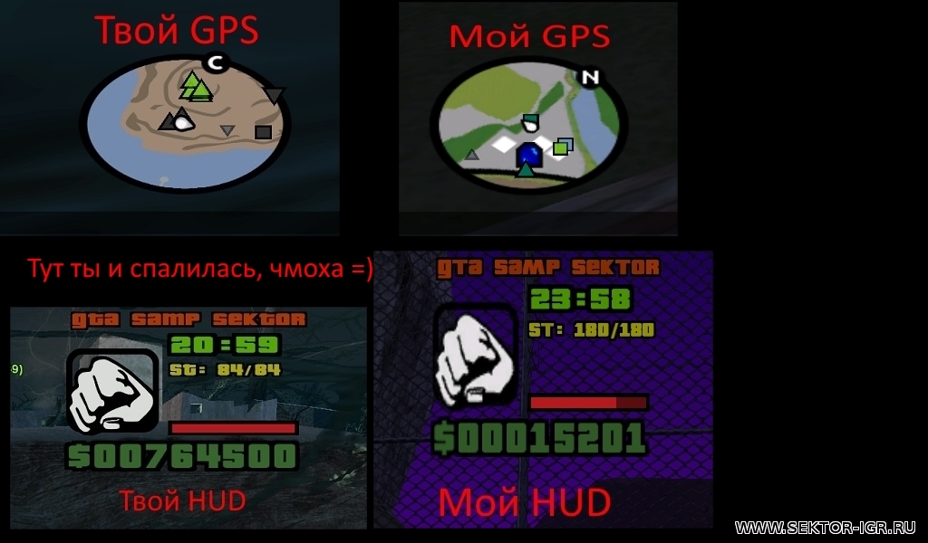 | TeppopucT_, пиши жб, если чёто не устраивает, а не в моей теме флуди. Еслиб у меня были моды - меняб забанили уже давно, я неоднократно кидал скрины в жалобы и чёт вроде без притензий. Насчёт чмошки - ты ошибся парень, гуляй... Ощутимой раздницы я на скринах не увидел, то что у меня чуть почётче графика - не повод клеветать. На 2-м скрине ты "тупо" врубил широкий экран. И слепому понятно, что самп один и тот же...