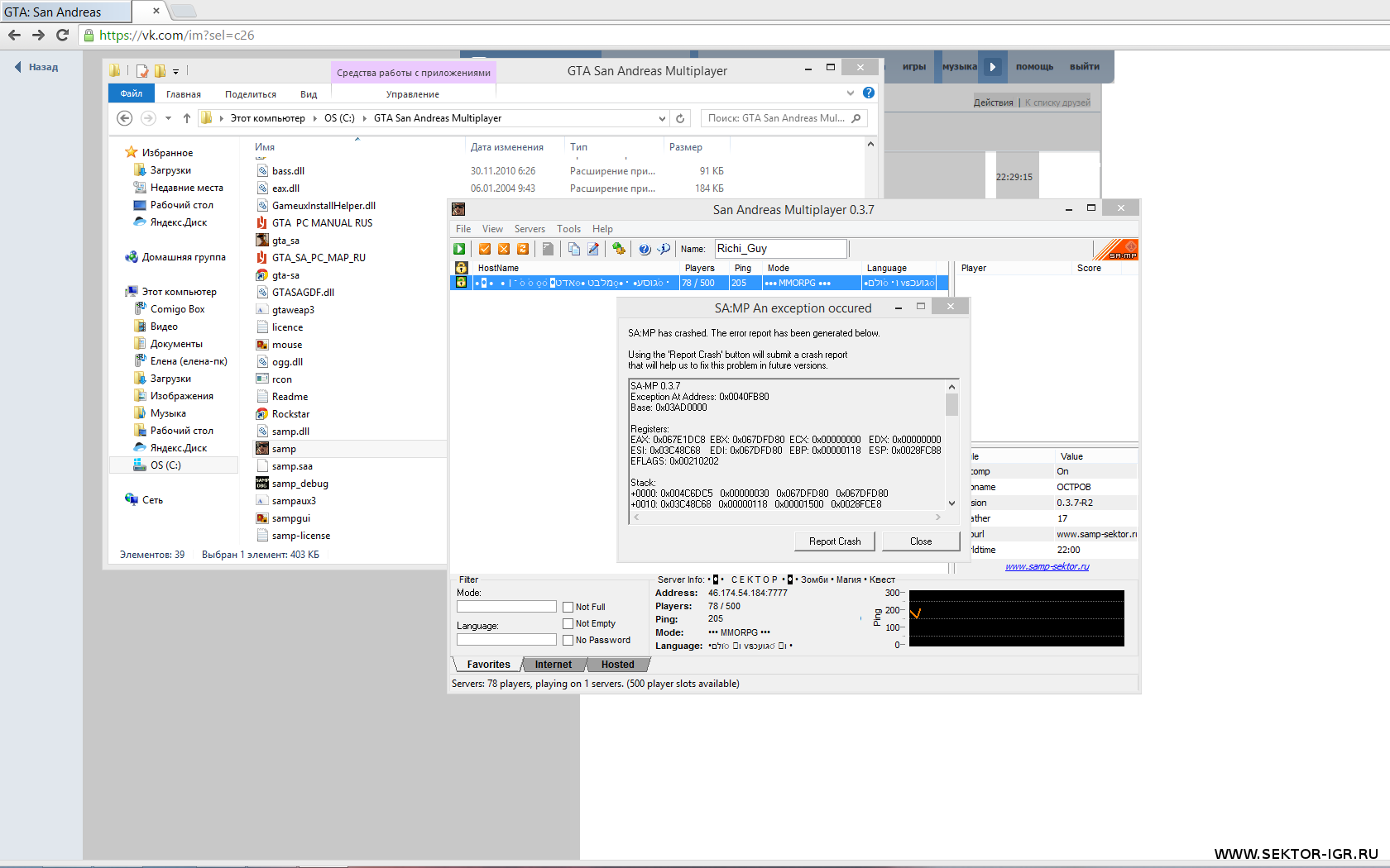 Простите что пишу сюда, т.к прав создать собственную тему нету. Мне нужна помощь в решении данной проблемы, всё перегуглил и ответа так и не нашёл. Данная проблема возникает ТОЛЬКО при подключении к вашему серверу, остальные же сервера прекрасно работают.