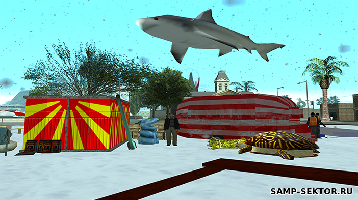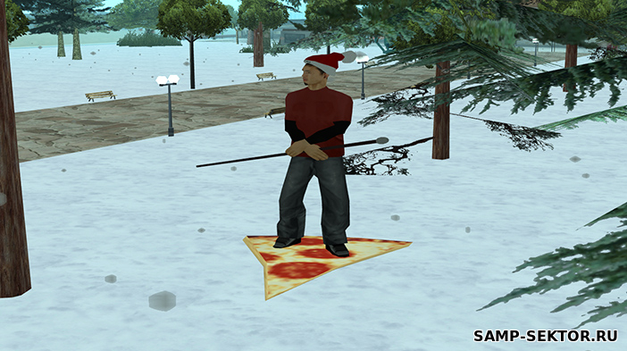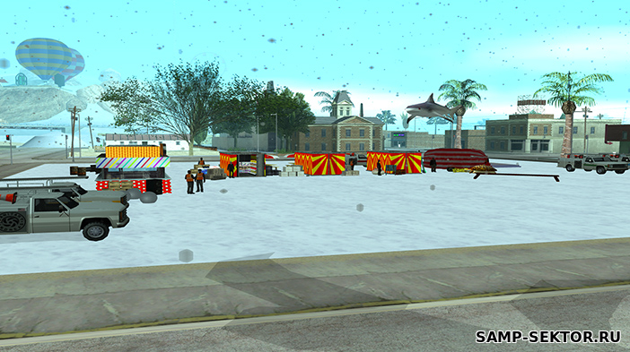 - Всю карту засыпать снегом, к сожалению, не удалось, из-за жестких лимитов SA:MP игру постоянно крашит, но вот падающий снег можно увидеть на всей карте! Если вам не нравится анимация падающего снега, то ее можно отключить в настройках. Но в тех местах, где есть сугробы, снег все-равно продолжит падать.