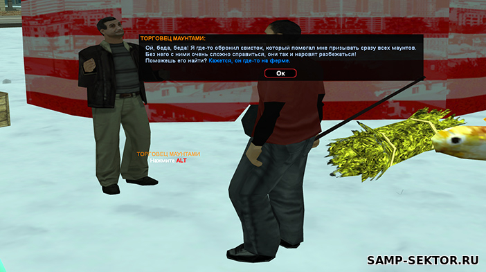 - Торговец расскажет, что где-то потерял свисток для призыва всех маунтов и без него ему трудно с ними совладать, они так и норовят разбежаться.