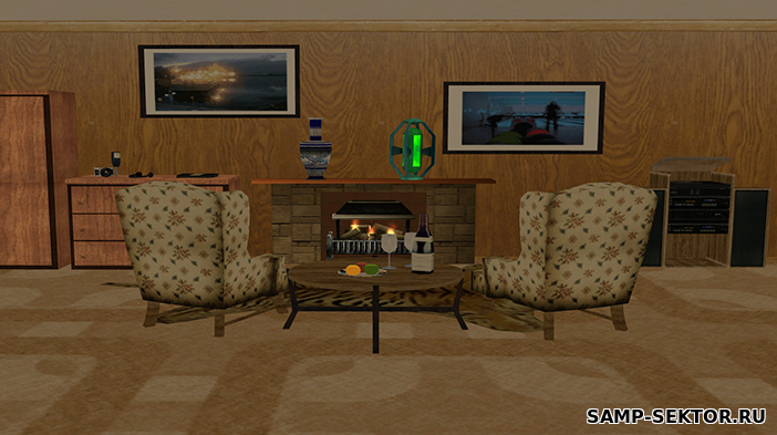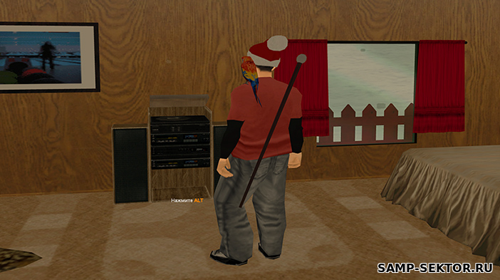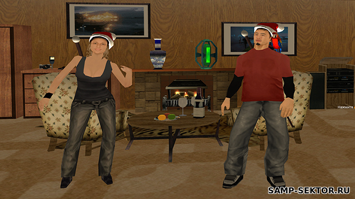 - Внутри дома уютный интерьер с настоящими окнами, через которые видно падающий снег! Тут можно погреться у камина, использовать шкаф и включать музыку. При этом, музыка имеет эффект отдаления - чем дальше вы от источника, тем тише будет звук!