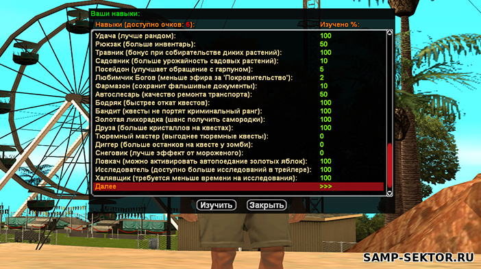 - Меню навыков переполнилось, потому что имеется лимит на 64 строки. Поэтому, сделана 2 страница навыков! Переключаться между страницами можно в конце меню. При этом, если вы будете прокачивать навыки со 2 страницы, то повторно открываться будет именно она, а не первая, что очень удобно!