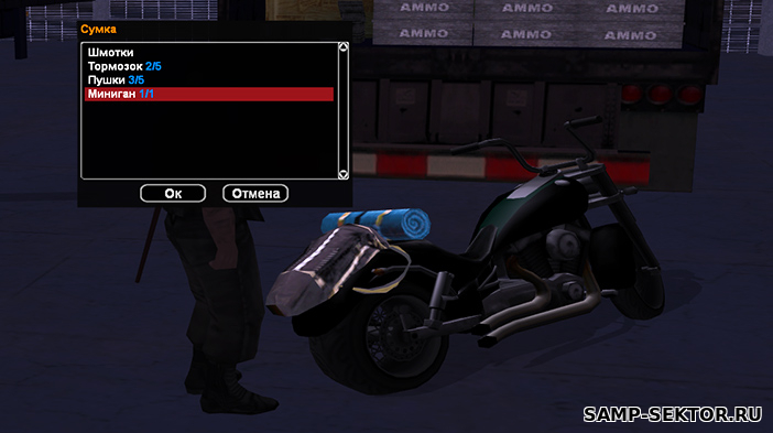 - По сюжету, Бармен похвалит вашу сумку на байке и расскажет, что на складе оружия есть не охраняемые фуры для разгрузки, откуда можно попытаться украсть миниган. Берите свой байк и отправляйтесь в дорогу!
