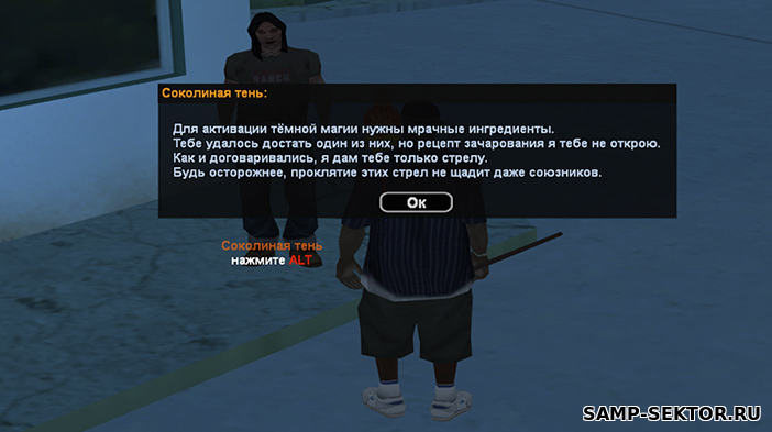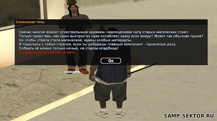 - Соглашаемся помочь - тут можно начать новый квест "Проклятая роса"! По сюжету вы узнаете, что многие воины острова используют огнестрел, совсем забыв старые виды вооружения, которые, однако, могут очень помочь на битвах. Соколиная тень может сделать для вас магические стрелы, но ему понадобится особый ингредиент!