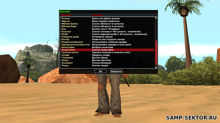 - У зомби же сырое мясо будет храниться в инвентаре. Съесть его можно через меню действий - тут появился новый пункт, а 2 других пункта удалены: конфеты и пиво теперь находятся в магическом меню!