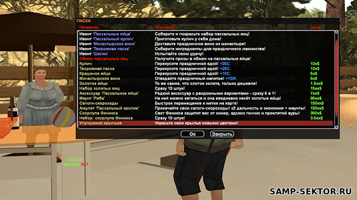 - Есть тут и много необычных пунктов с заманчивыми вещичками! Начнем с интересного товара — "Золотое яйцо". По сути, это обычное золото, но стоит оно на 400к дешевле, чем в "Золотой жиле", поэтому не упустите шанс закупиться золотишком с такой хорошей скидкой! В этом году мы сделали возможность покупать сразу поп 10 штук, чтобы было удобнее закупиться!