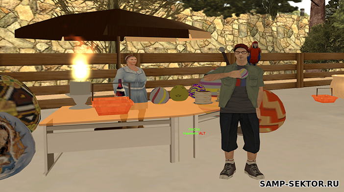 - Пятый ивент проверит вашу удачу! В древности, была такая забава на Пасху — играть в "Шапки". Об этом вам может рассказать торговец и предложит сыграть с ним! Для игры потребуется пасхальное яйцо, которое торговец спрячет под одной из шапок. Ваша задача — угадать под какой. Если вы ошиблись, то торговец заберет яйцо себе, а если угадали, то вернет яйцо и даст подарок, который вы сможете подарить!